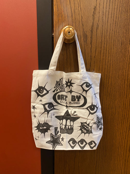 Handmade Canvas Tote Bag- Eyes & Teeth Pattern