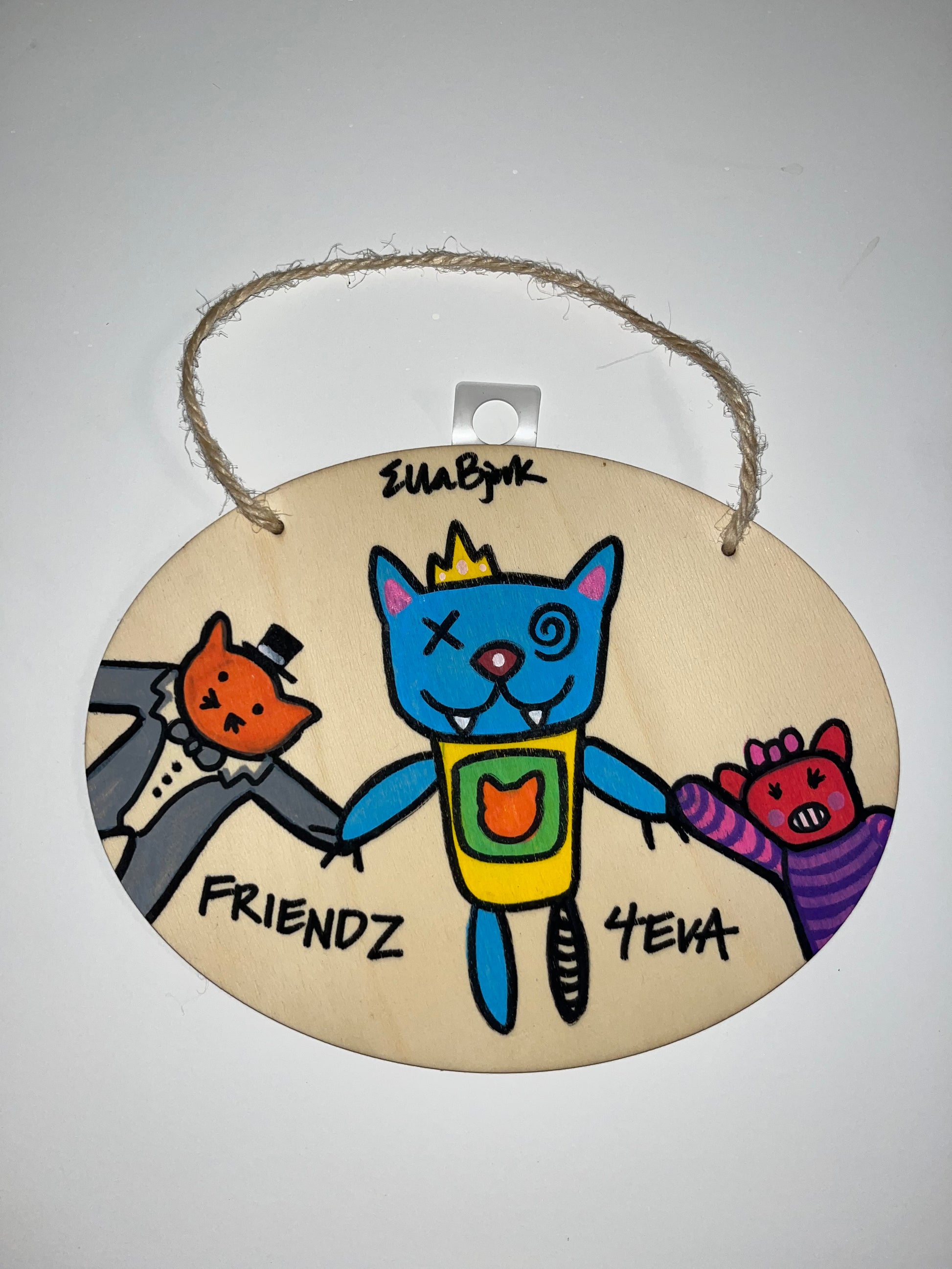 An original 1 of 1 illustration completed using Posca markers on an 8” wide wooden oval sign- ready to hang!