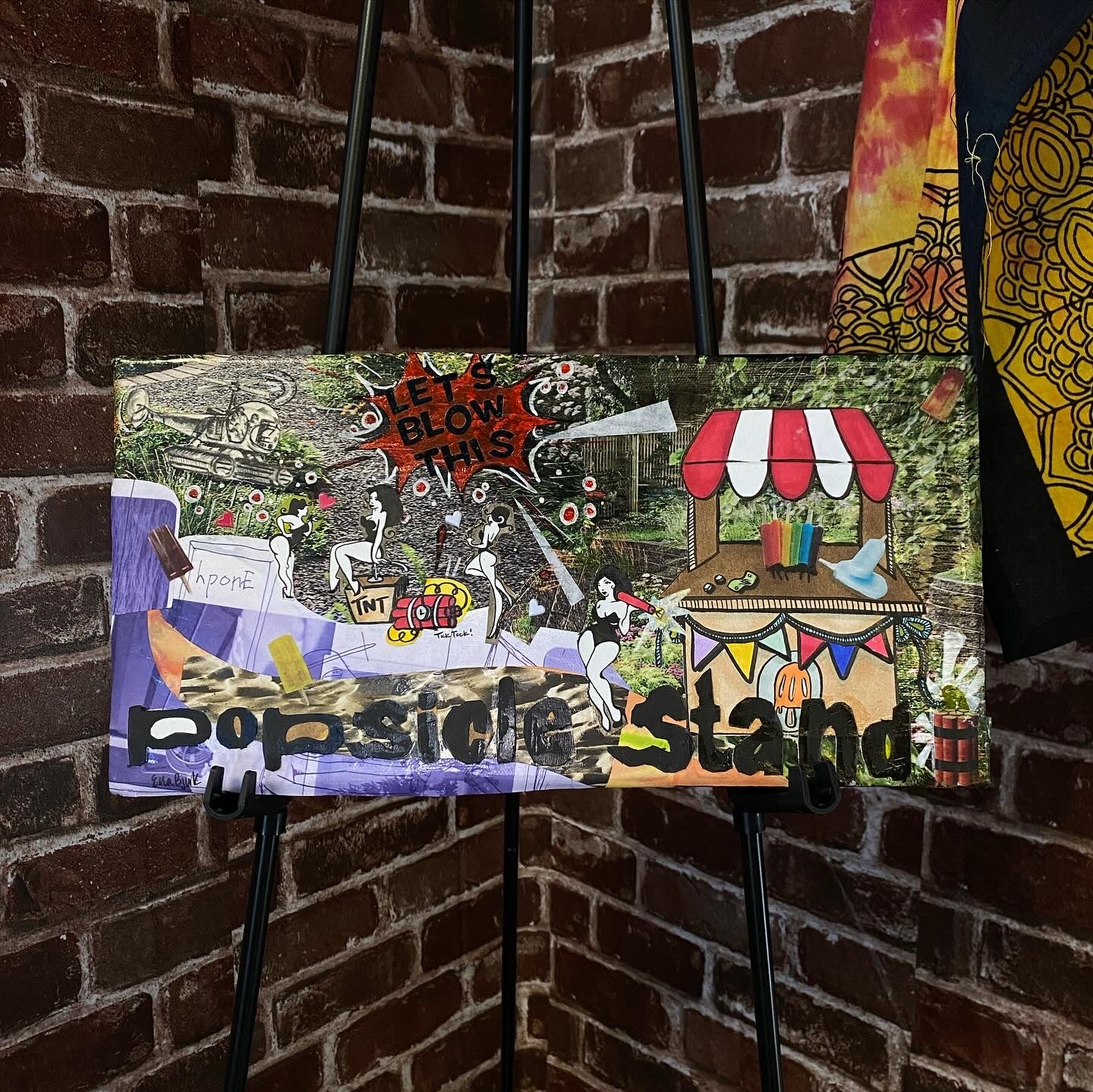 A mixed media collage done on a medium sized rectangle canvas. A one of one original piece- Sold 7/27/24 at “Artistic Fusion”
